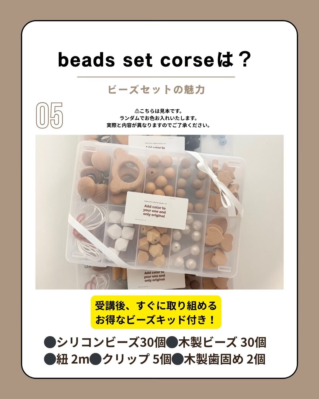 ❸シリコンや木製ビーズを含めたランダムビーズ4つ付き