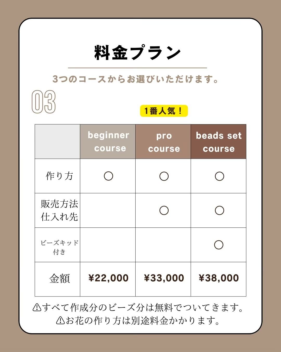 ⚠︎こちらはビギナーコースのお値段となっております。
